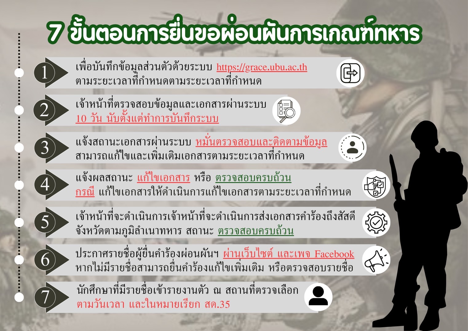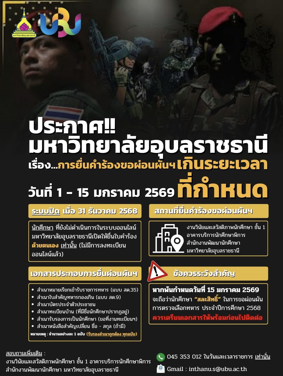 แนะนำขั้นตอนการยื่นผ่อนผันการตรวจเลือกเข้ารับราชการทหารกองประจำการ มหาวิทยาลัยอุบลราชธานี (UBU Grace)
